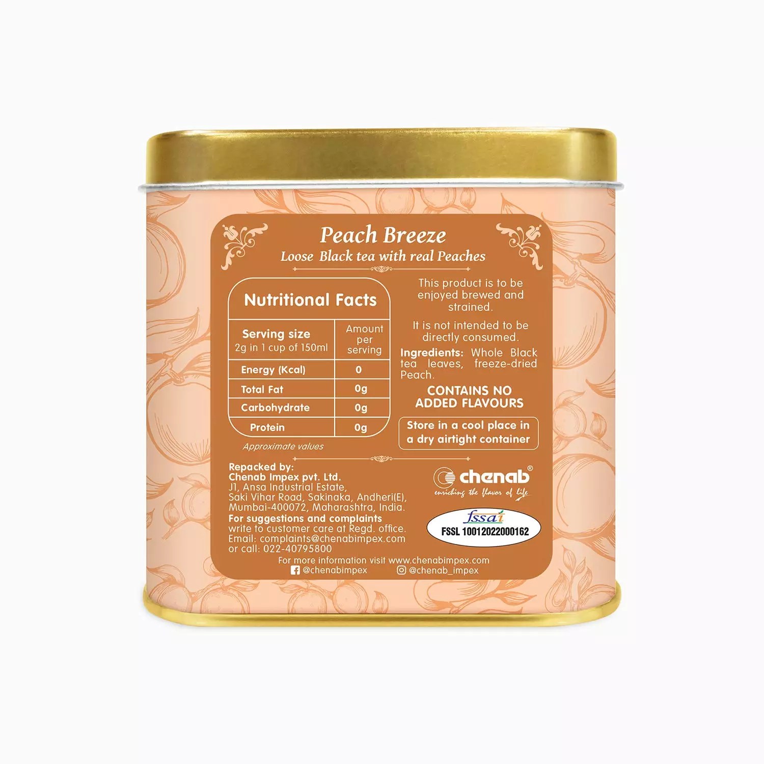 - Ingredients: Whole Black tea leaves, freeze-dried Peach.